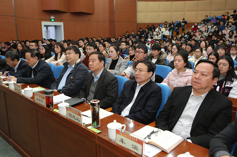 王书坚的宣讲报告分为两部分,一是充分认识十九届四中全会的历史地位和重大意义;二是深刻领会十九届四中全会精神的丰富内涵。