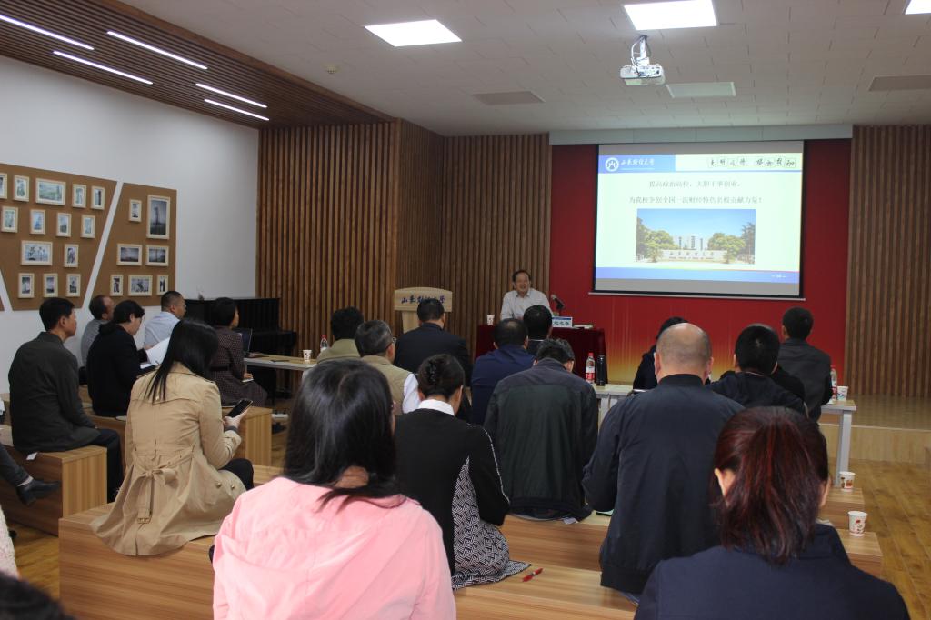 根据学校党委“不忘初心、牢记使命”主题教育安排,10月22日上午,校党委副书记赵友春以《提高政治站位,大胆干事创业,为我校争创全国一流财经特色名校贡献力量》为题,在燕山校区四号教学楼三楼会议室为部分党员干部上专题党课。党课由党委学生工作部负责人主持。