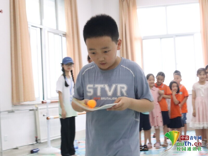 图为体育课上朱封小学学生进行乒乓球控球训练。中国青年通讯员 李梦真 摄