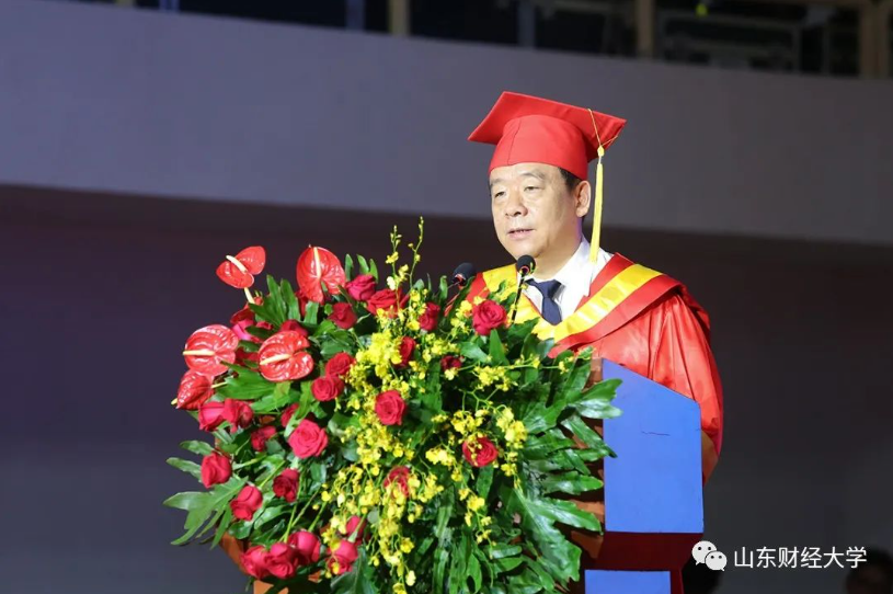 在这五彩缤纷、孕育希望的美好季节,我们在这里,隆重举行山东财经大学2023届毕业典礼,热烈欢送圆满完成学业的8241名同学。首先,请允许我代表全体师生员工,向2023届毕业生同学们,表示热烈的祝贺!向为你们的成长倾注无限心血的师长、父母与家人,表示衷心的感谢!