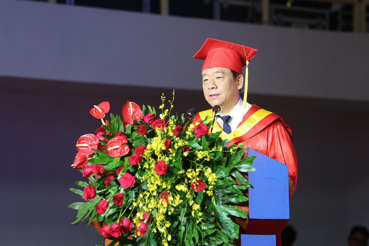在热烈的掌声中,王邵军发表讲话,向全体毕业生表示热烈的祝贺,向为学生成长倾注心血的师长、父母与家人表示衷心的感谢,深切寄语毕业生们“奔赴山海,梦想花开”。