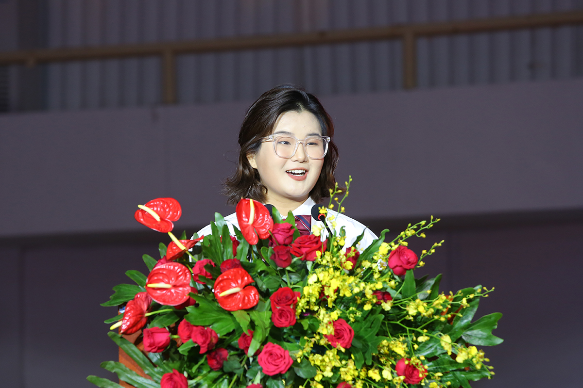 金融学院2021级硕士生赵林,管理科学与工程学院2019级本科生刘乐童作为毕业生代表先后发言,讲述了自己在山财大的精彩故事,表达了对母校和师长的感恩、对美好未来的憧憬。