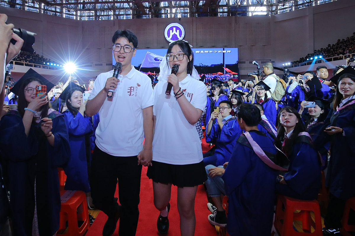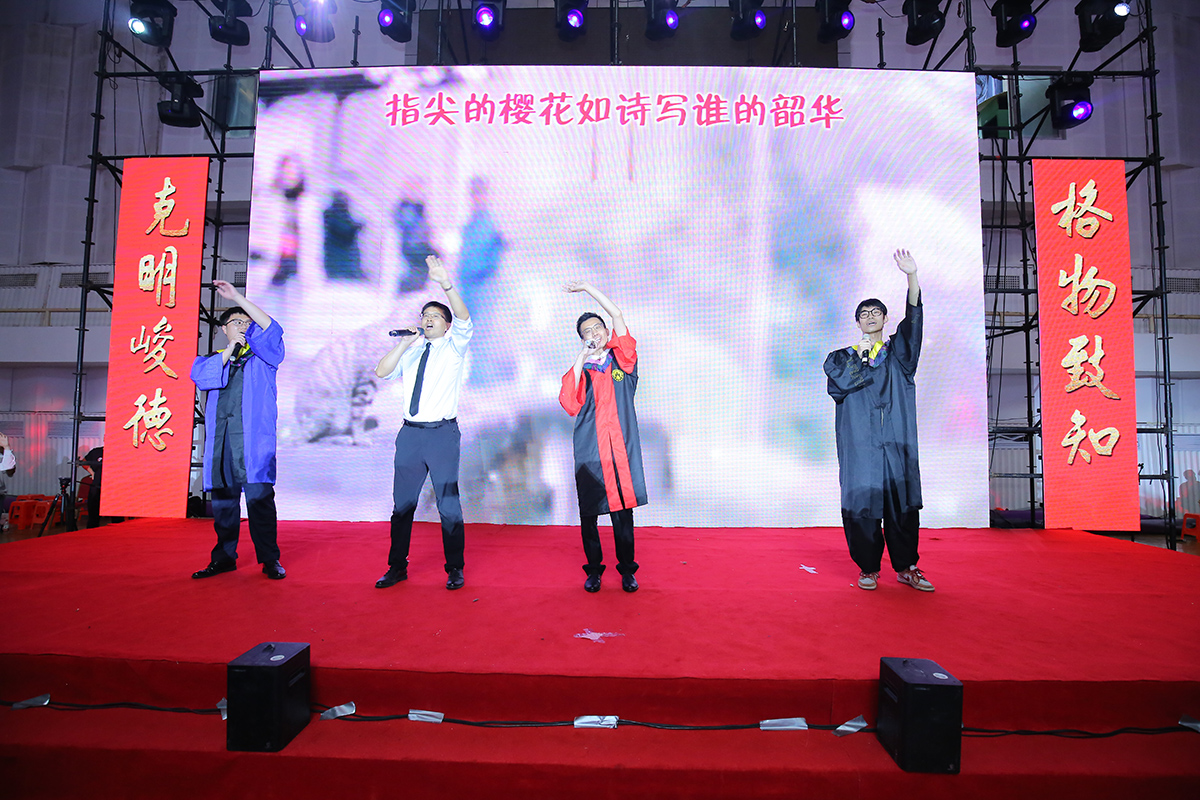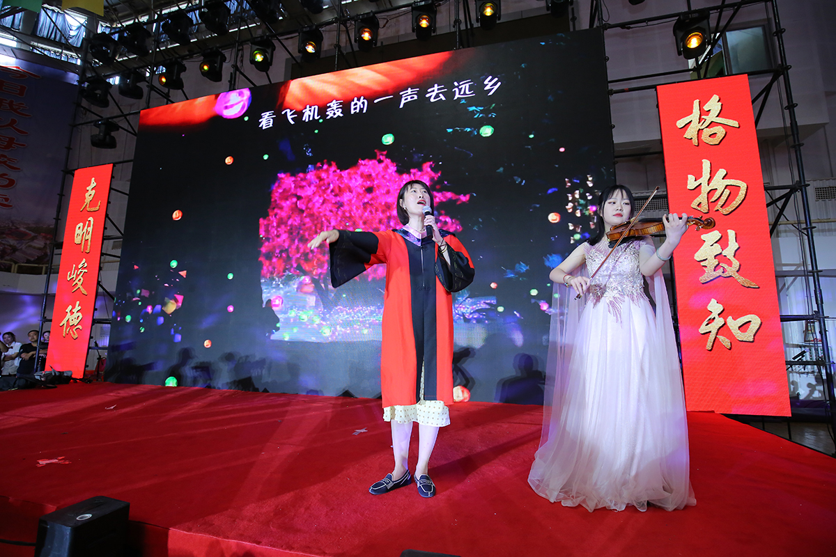 典礼结束后,现场音乐声起,青春声浪点燃。我校中国国际低碳学院王璟珉教授演唱的歌曲《这世界有那么多人》,“网红”统计与数学学院宋浩副教授激情演绎的《一路生花》,考取中国科学院大学的“学霸情侣”、计算机科学与技术学院毕业生张映辰、黄晓斐带来的《你曾是少年》,毕业生吉他弹唱《阳光总在风雨后》、师生联唱《凤凰花开的路口》等歌舞表演,将现场气氛一次次推向高潮,赢得在场师生阵阵掌声、尖叫与欢呼。