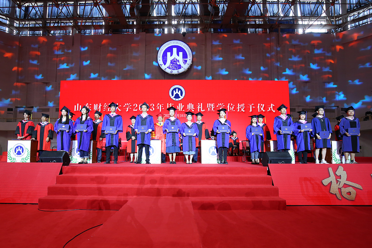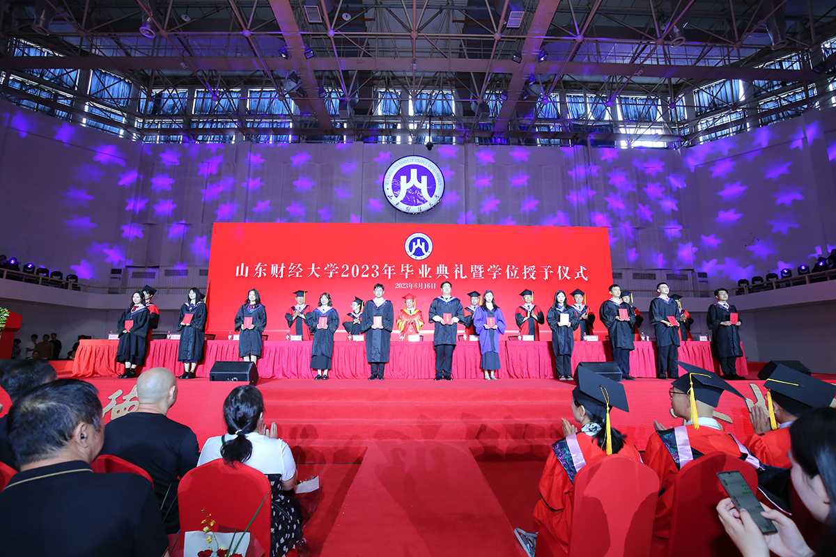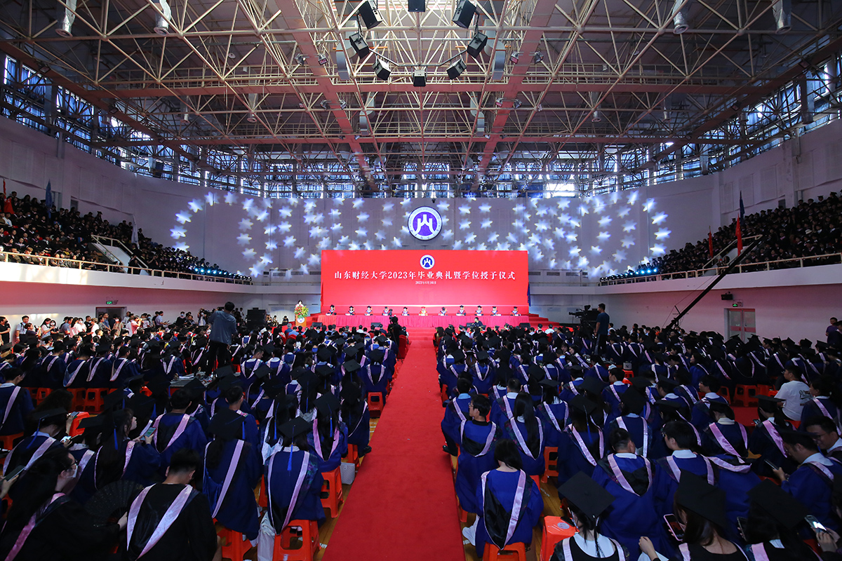 奔赴山海,梦想花开。6月16日上午,山东财经大学2023年毕业典礼暨学位授予仪式在舜耕校区体育馆隆重举行。