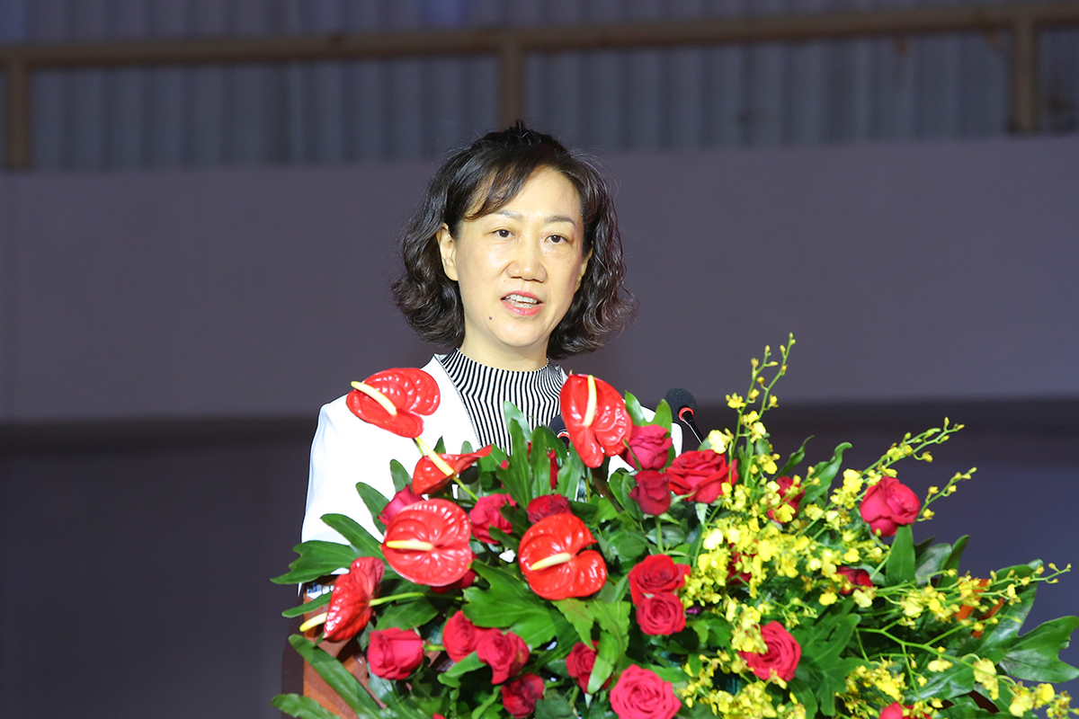 随后,王邵军为九阳集团联合创始人、山东省政协常委、山东省总商会副会长、1983级校友黄淑玲颁发“杰出校友证书”。黄淑玲作为校友代表致辞,分享了自己的创业经历,并勉励学妹学弟们不断设定目标、建立自信、懂得感恩,打拼美好的人生。