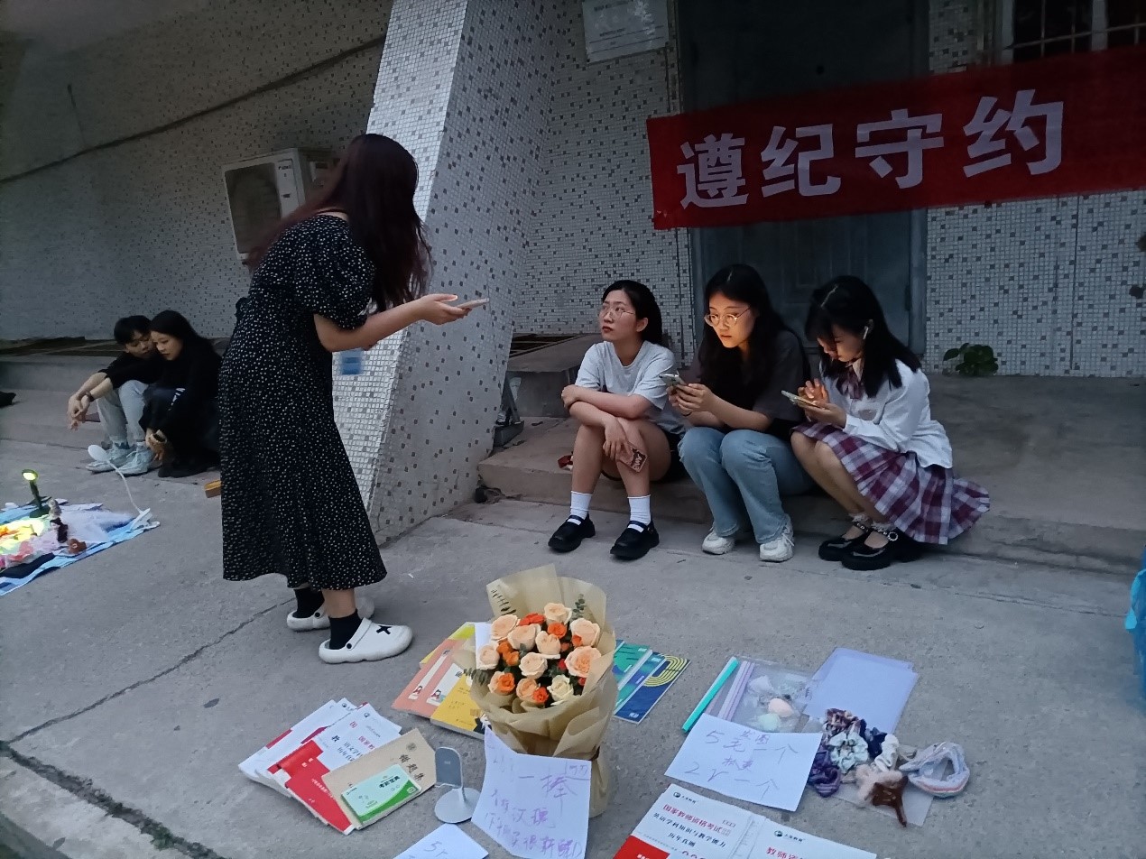 活动现场来自学工在线、文学与新闻传播学院、财政税务学院的成员分工明确,实地察看活动场所,询问了解同学们的交易情况,并对活动过程中可能存在的安全隐患进行了排查,为活动的正常举行保驾护航。