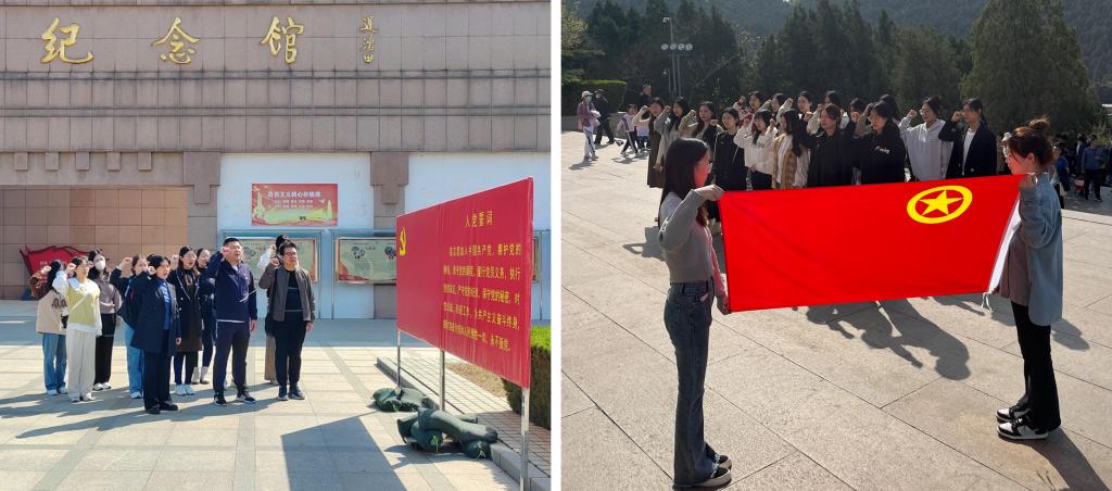 经济学院、会计学院、马克思主义学院、国际教育学院和校学生会等组织师生党员、党员发展对象、入党积极分子和团员代表,到济南市英雄山革命烈士陵园开展主题党日、主题团日等活动。在巍峨庄严的革命烈士纪念塔下,参与师生列队肃立,向纪念塔鞠躬致敬并献上花篮,缓步绕行瞻仰,表达深切缅怀之情。
