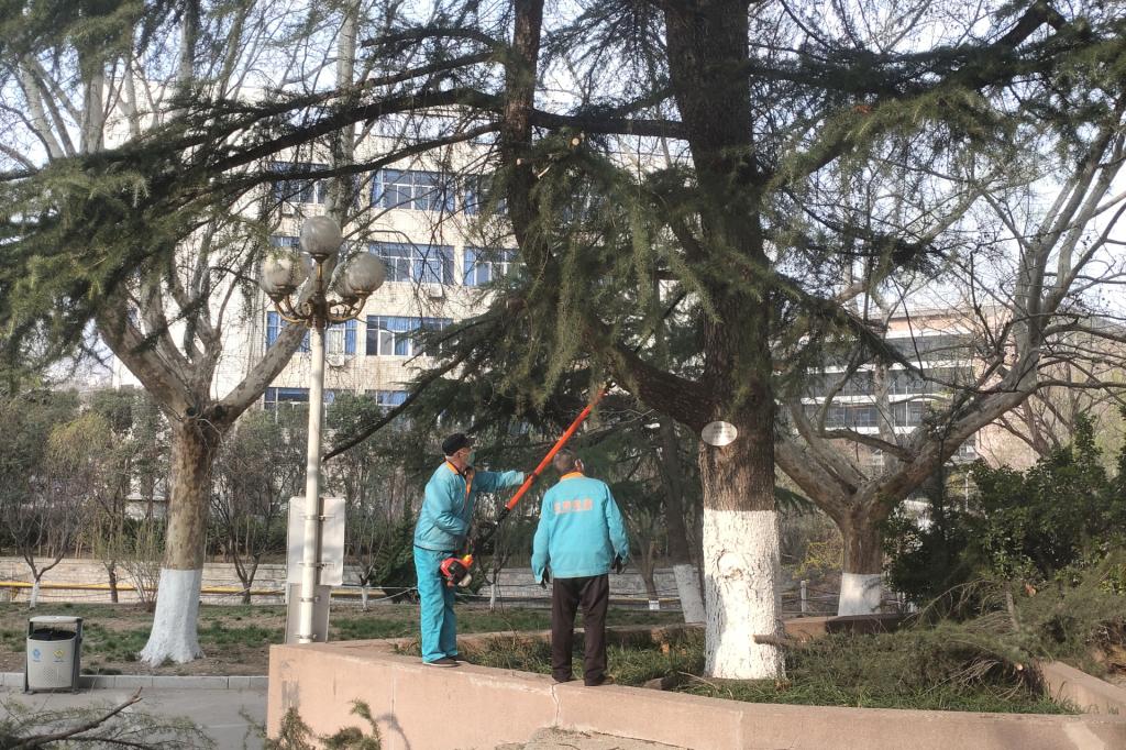 春分时节,万物复苏。近日,在全校师生喜迎建校70周年暨合并建校10周年校庆之际,按照校党委行政工作部署,总务处会同安全管理处、基建处开展了“修枝塑形”靓园行动,为校区装扮春天的色彩。副校长张培国到现场指导。