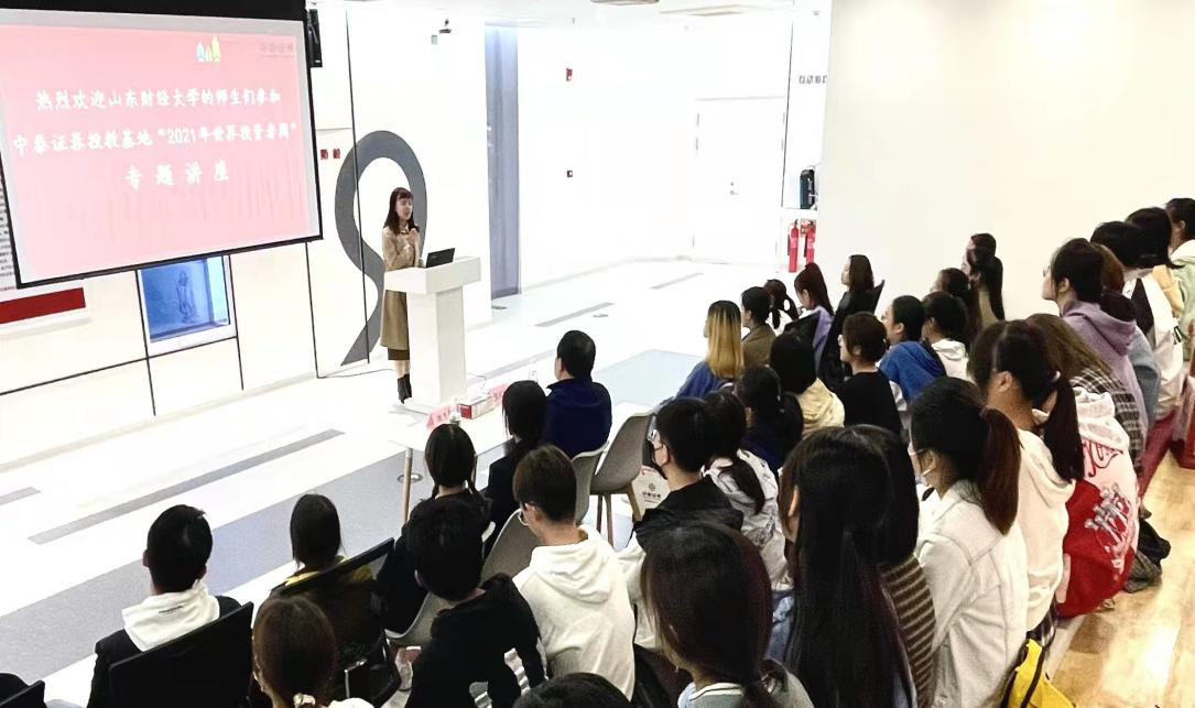 为维护投资者合法权益,深入宣传理性投资理念,提高在校大学生的专业知识水平和风险防范意识,10月14日,学生工作处副处长张贞梅带领70余名师生走进中泰证券投教基地,参加“普及金融知识,防范金融风险”为主题的2021年世界投资者周专题讲座,聆听证券期货基础知识,树立理性投资理念,加强自身的保护和自律意识,增强风险防范意识和责任意识。