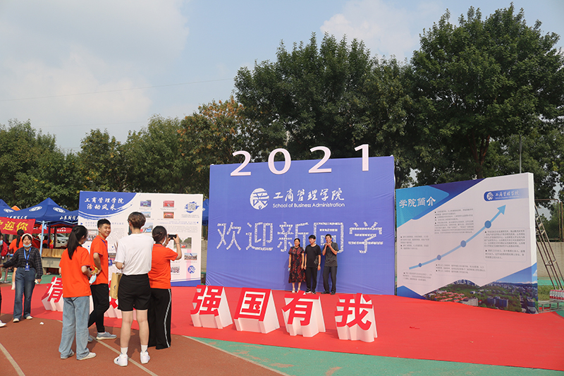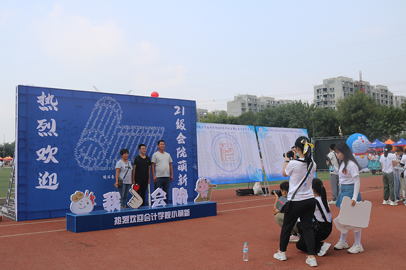 报到现场,精致新颖的展台彰显着每一个学院的特色。经济学院设计了张贴有新生姓名的台阶,台阶之上设计了由新生照片组成的中国地图形状的笑脸墙,寓意踏上人生新的旅程,梦想从这里启航;工商管理学院迎新主展板由全体新生名字组成,“请党放心 强国有我”醒目的立体字提醒新生不忘强国之志;财政税务学院以学生证为原型设计合影板,用镜头抓住点点滴滴,用相片定格美好瞬间;金融学院新生在“金色梦想 融耀青春”合影墙上签名,在“金小红”志愿者引导下完成报到;管科学院为新生准备了具有学院特色的手提袋和学院院服,通过开展抽奖兑换管科文创的特色活动,帮助新生尽快融入学院文化生活;计算机科学与技术学院设计了“小小明信片”,以“致四年后的自己”为主题,引导新生树立远大目标,开启灿烂前程;国际教育学院为新生制作报到签名卷轴,开启了大学生活的“第一笔”,并特制了“新生火车票”让他们书写大学愿望与寄语,带着期冀逐梦起航。