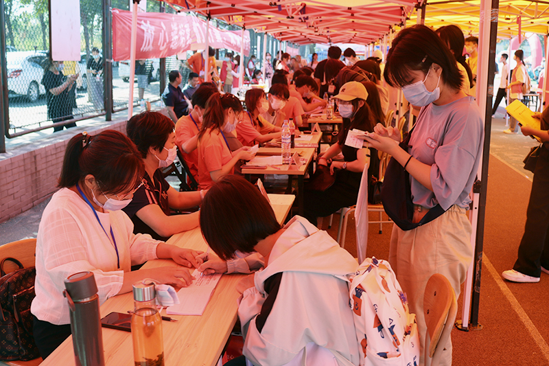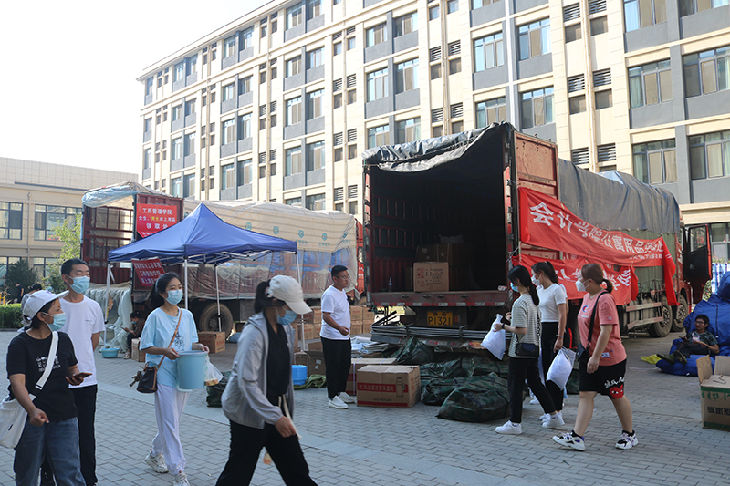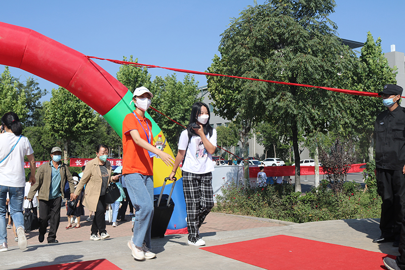 菁菁校园,热情忙碌的在校师生迎接着每一个学弟学妹。学生宿舍一应物品配备齐全,志愿者逐个引领,亲切叮嘱生活细节,家长和学生的满意之情溢于言表;报到现场,学校为家庭经济困难新生开辟了绿色通道,不让一个困难学生影响入学;校园沿线,学校准备了医疗服务、咨询服务、防止网络诈骗进校园现场宣传等服务,体贴入微,让学生感受到美丽校园的同时,还感受到安全校园、温馨校园、和谐校园。