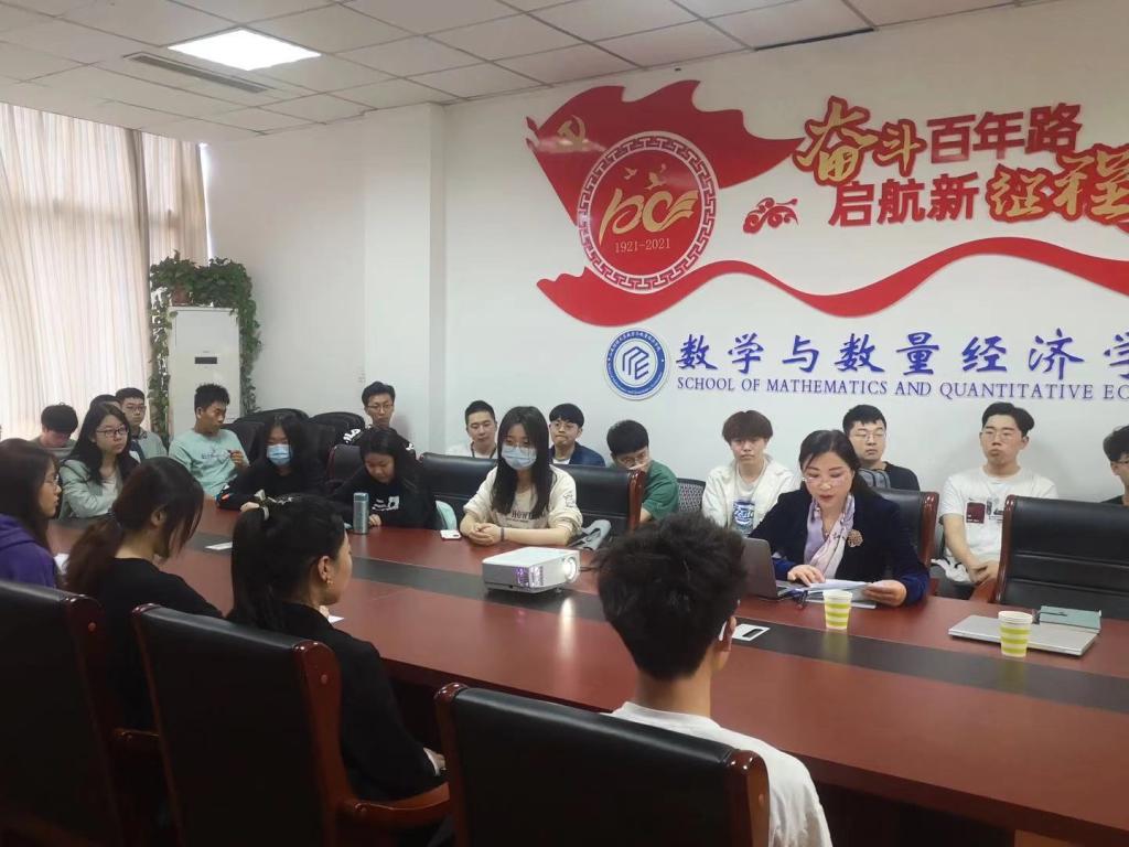 为深入贯彻落实习近平总书记在党史学习教育动员大会上的重要讲话精神,高标准高质量推进我校党史学习教育,根据《山东财经大学党史学习教育实施方案》,5月10日下午,我校党史学习教育宣讲团成员、学生处处副处长孙丽华以《学史增信 厚植情怀》为主题,在数学与数量经济学院进行党史宣讲学习活动。数学与数量经济学院党委书记李振华、党委副书记杨德嵋、学生处玛黑拉老师以及40余名学生党员、积极分子参加本次宣讲。