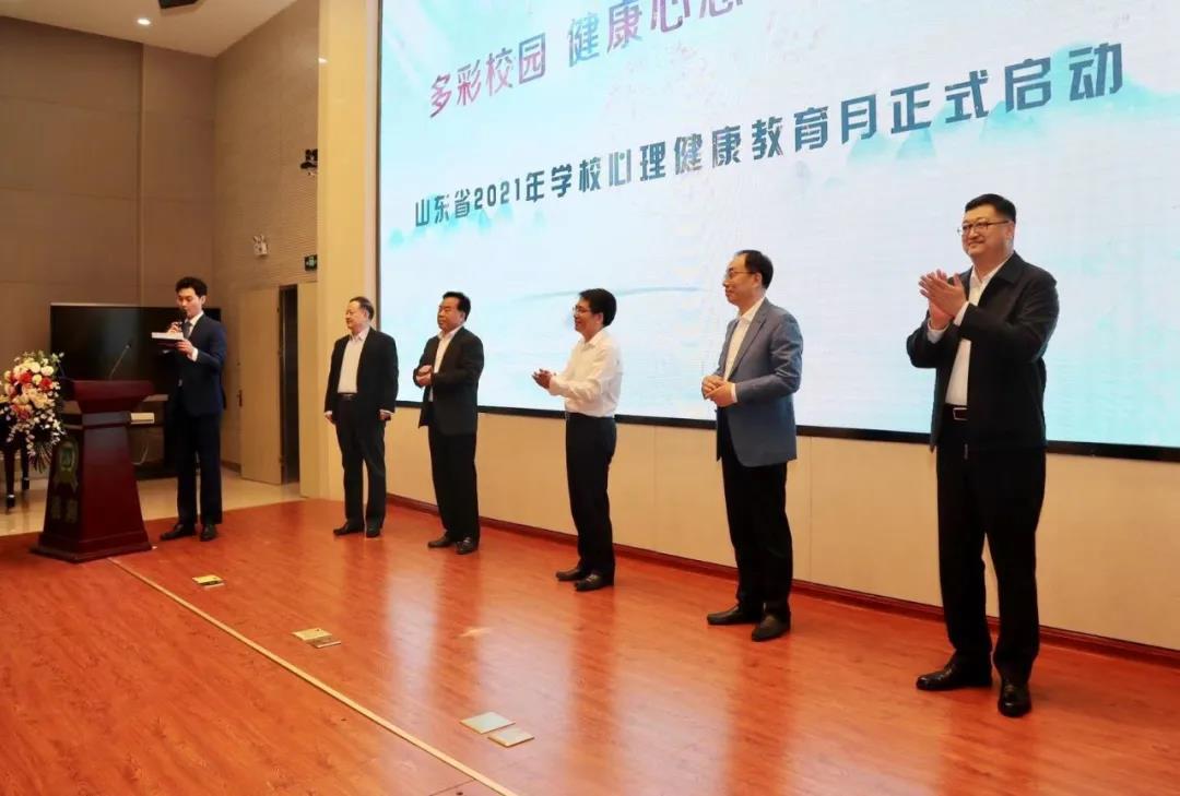 5月13日,山东省2021年学校心理健康教育月启动仪式暨济南市学校心育现场会在济南德润高级中学举行。仪式上,与会领导嘉宾共同按下活动启动标志,正式开启山东省2021年学校心理健康教育月活动。