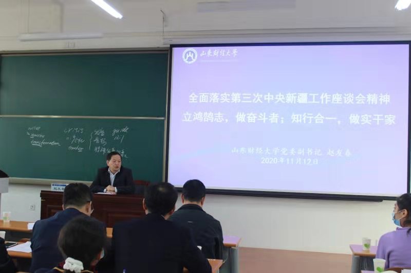 为全面学习贯彻落实第三次中央新疆工作座谈会精神,11月12日下午,校党委副书记赵友春在圣井校区给少数民族新生主讲了题为《立鸿鹄志,做奋斗者;知行合一,做实干家》的思政课。党委学生工作部、圣井校区管理办公室、数学与数量经济学院负责同志一起听课。