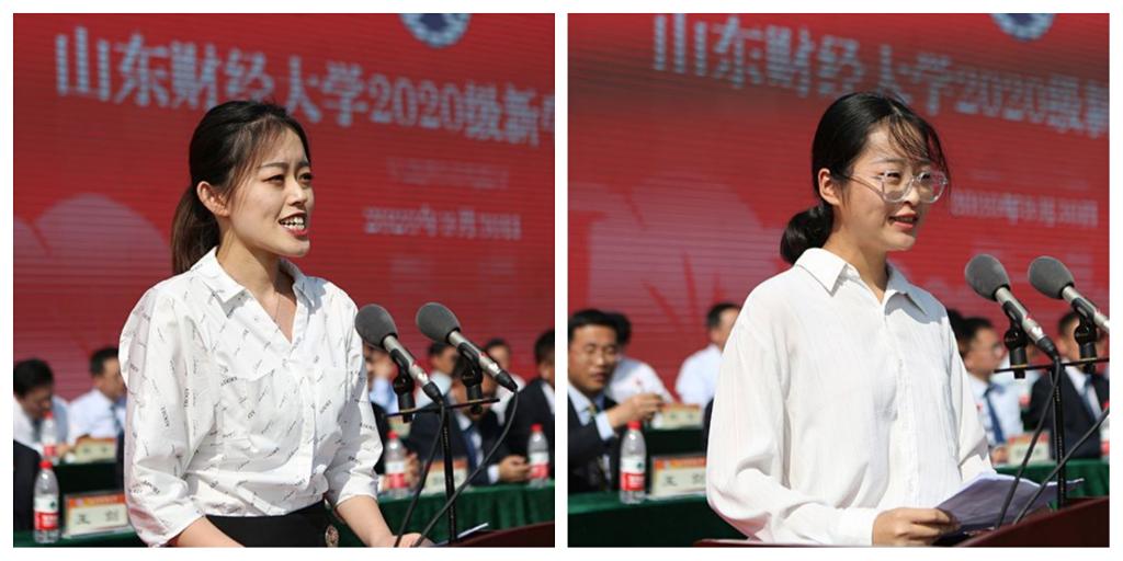 在校生代表公共管理学院2017级劳动与社会保障专业庄晨、新生代表国际经贸学院2020级经济与贸易类王番分别发言。
