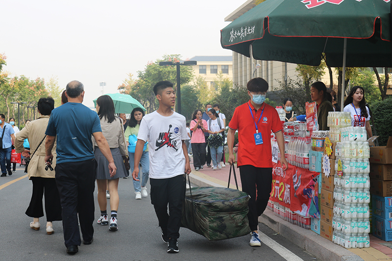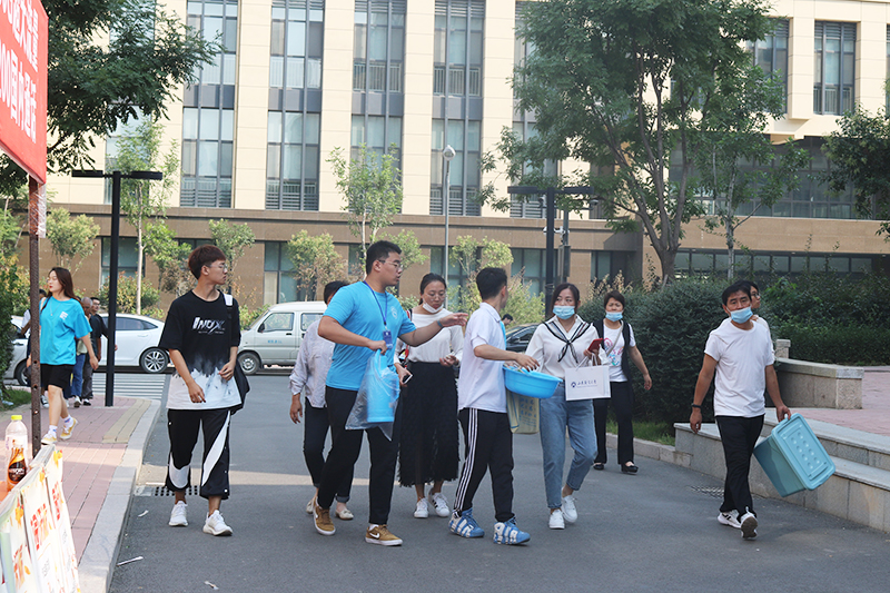 虽然疫情防控形势依然严峻,新生报到温馨服务一样也不能少。学校在济南各火车站、长途汽车总站和飞机场设立接站点和引导员,保证新生到了济南有人接;各校区准备了十几辆摆渡车流水发车往返于校门口和报到区、宿舍区;研究制定家长车辆最佳行驶路线,保证新生进入校园有秩序;校园门口、测温处、各学院报到处、志愿者服务站、免费饮水处、咨询处等服务站点都有工作人员和志愿者热情服务,保证见到师生如亲人。