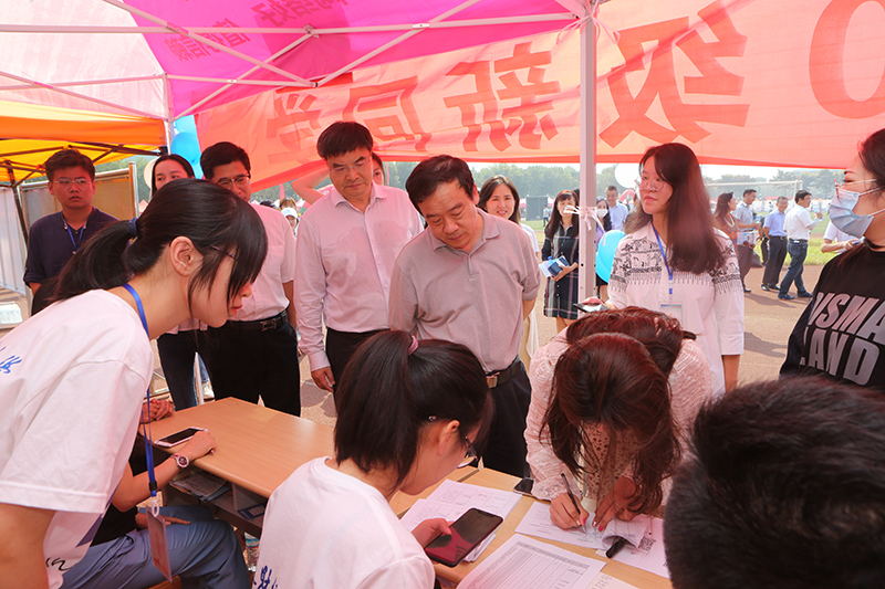 上午9:00,学校党委书记王邵军、校长赵忠秀、党委副书记赵友春、副校长韩作生、张书学来到迎新现场看望前来报到的新生和家长,亲切慰问奋战在迎新一线的各学院、职能部门工作人员和志愿者,对于迎新工作予以充分的肯定。