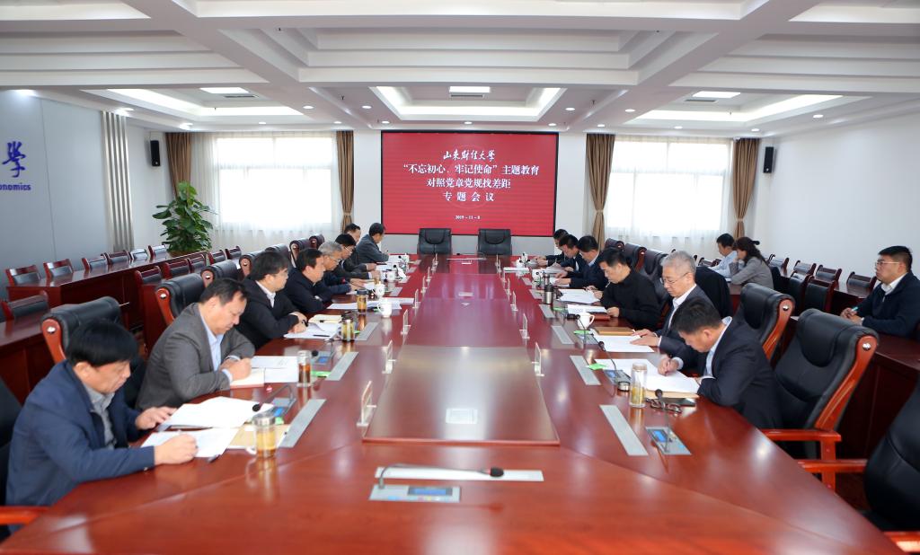 11月8日上午,按照“不忘初心、牢记使命”主题教育工作安排,山东财经大学领导班子召开了对照党章党规找差距专题会议。省委第十巡回指导组组长王桂鹏到会指导。校党委书记王邵军主持会议。