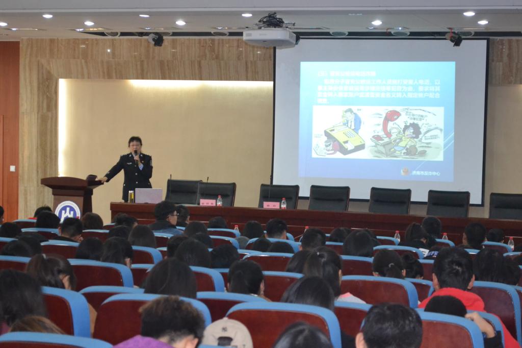 “没有防诈骗知识就是小白鼠!”10月17日下午,学校“成长·成才大讲堂”第240期在圣井校区B5106举行,党委保卫部和党委学生工作部联合邀请济南市公安局刑警支队反诈骗中心副调研员、一级警督杨玲做了一场“2019大学生反诈骗防诈骗”的专题讲座,圣井校区14个学院的2019级学生代表和新生辅导员近300人参加了讲座。