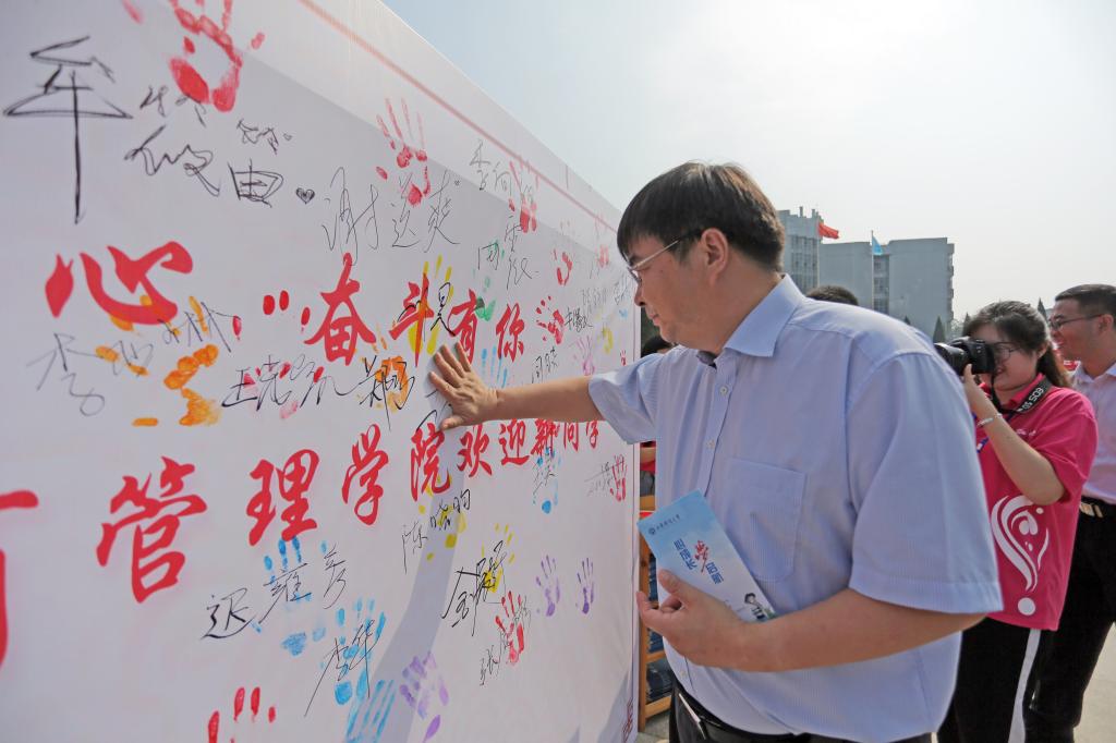 校长赵忠秀、党委副书记赵友春、副校长綦好东等校领导先后来到燕山、舜耕两个校区指导迎新工作,与前来报到的新生亲切交谈、合影留念,并亲切慰问迎新工作的师生员工。