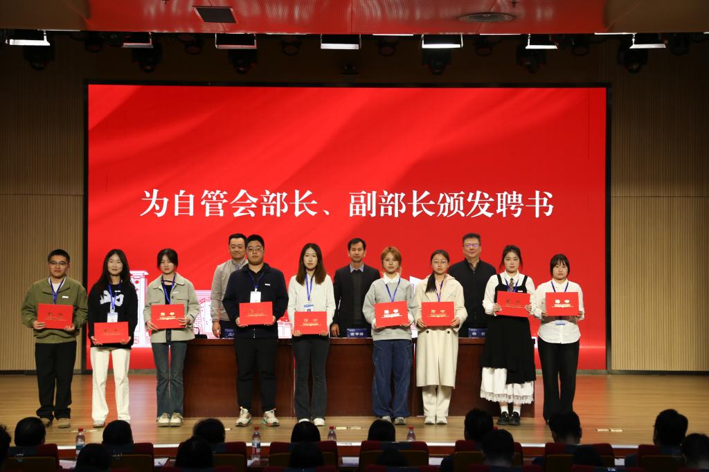 学生代表董冠宏发言,表示自管会将通过“需求清单化、服务项目化、管理精细化”工作模式,着力打造有温度、有深度、有力度的学生成长共同体。