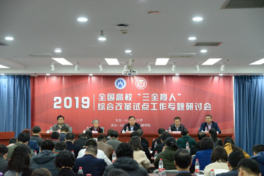 11月15日,由山东财经大学主办,金融学院承办的2019年全国高校“三全育人”综合改革试点工作专题研讨会在山东天舜大厦举办。北京大学、中山大学、西南财经大学、北京师范大学、中央财经大学、中南财经政法大学、东北财经大学等全国31所高校110余人参会。学校党委副书记车滨、山东省教育厅学校宣传教育工作处副处长孔轶众出席会议并致辞,会议由金融学院院长彭红枫主持。
