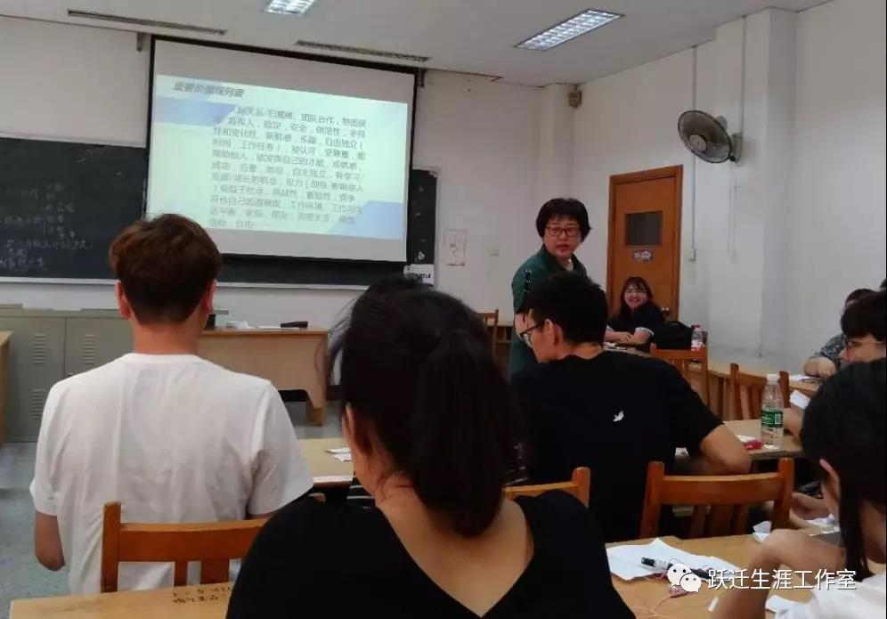 史萌老师通过马斯洛需求层次理论、赫茨伯格的双因素激励理论,重要价值观选择互动和小组辩论帮助学生探索自身潜在价值观,并要求学生在培训结束后拿出个人职业生涯规划书并参与答辩。