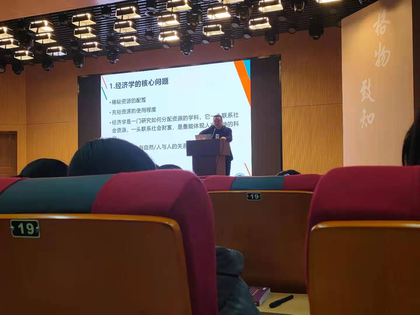 本次讲座的主题是“大学生学习应该注意哪几个问题”,张教授从“经济学的核心问题、经济学蕴含的科学精神、经济学的学习方法、学习经济学的目的、经济学应该注意的问题”五个方面对此展开了论述。以图文并茂的形式带领同学们了解了党的十九大提出的科学论断,即我国社会主要矛盾已经由“人民日益增长的物质文化需要同落后的社会生产之间的矛盾”转化为“人民日益增长的美好生活需要和不平衡不充分的发展之间的矛盾”,进而对经济学蕴含的科学精神进行了巧妙地解释——“均衡”是在主张权利和相互尊重的前提下,通过谈判、妥协来达成的双方都能接受的平衡状态,也可以推至代际之间的关系和人与自然的关系。