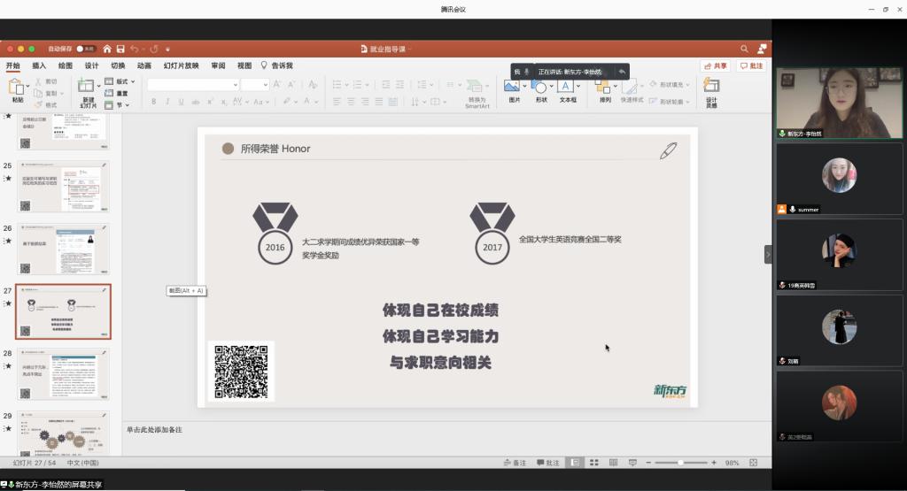 11月19日,由外国语学院就业办负责人陈夏在腾讯会议中做了“疫情影响下的全球就业形势分析”为主题的讲座。讲座中还邀请了新东方济南学校组织与人才发展经理李怡然。2017级、2018级、2019级的部分学生线上参加了讲座。