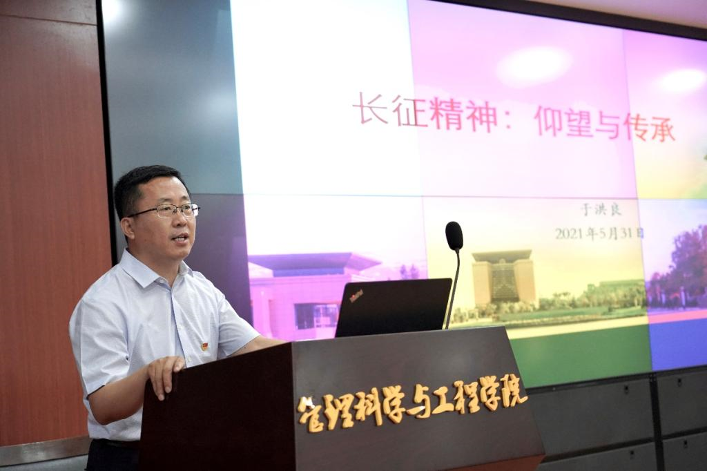 5月31号晚,山东财经大学党委宣传部常务副部长、学校党史学习教育宣讲团成员于洪良教授为管理科学与工程学院研究生做“长征精神:仰望与传承”主题宣讲,讲座由党委副书记崔东峰主持,团委书记兼研究生辅导员何丽以及研究生支部全体党员和入党积极分子参加了此次活动。