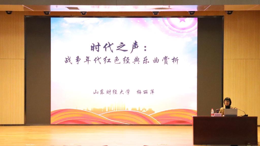 11月2日,成长成才大讲堂之“时代之声:战争年代红色经典乐曲赏析”专题讲座于圣井校区文体活动中心圆满完成。本次活动由山东财经大学学生工作处主办,财政税务学院承办。活动邀请财政税务学院党委副书记、教授梅丽萍主讲,2020级部分学生参加此次活动。