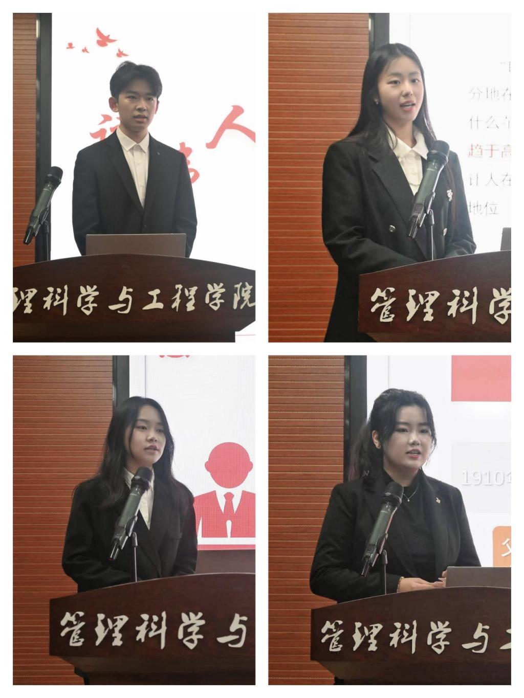 在两期“述往追来”特色读书活动的熏陶和带动下,4月15日,“多触角两栖式”辅导员工作室指导管科学院大学生理论宣讲团在圣井校区6432教室,以“读伟人著作,立青年之志”为题举办了一场别开生面的研讨式宣讲。学院党委书记徐世星,学校“多触角两栖式”辅导员素质能力提升工作室主持人冯婧出席了活动,活动由宣讲团成员王辰洋主持。