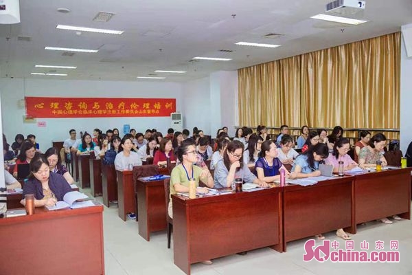 中国山东网8月25日讯8月24日—25日,由中国心理学会临床心理学注册工作委员会山东督导点主办,山东财经大学大学生心理健康教育与研究中心承办、山东省心援社会工作服务中心协办的心理咨询与治疗伦理培训在我校燕山校区图书馆举办。十余所高校专职心理教师、省内专业医疗机构医生、企事业单位和社会服务机构专职人员以及我校各学院辅导员代表共计80余人参加培训。