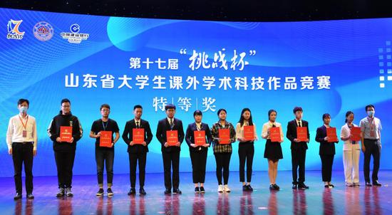 6月3日上午,第十七届“挑战杯”山东省大学生课外学术科技作品竞赛颁奖典礼在山东大学音乐厅落下帷幕。山东财经大学喜获特等奖3项,推报国赛作品6件,推报省赛作品数量、推报国赛作品数量均位列全省首位,荣获大赛优胜杯和优秀组织奖。