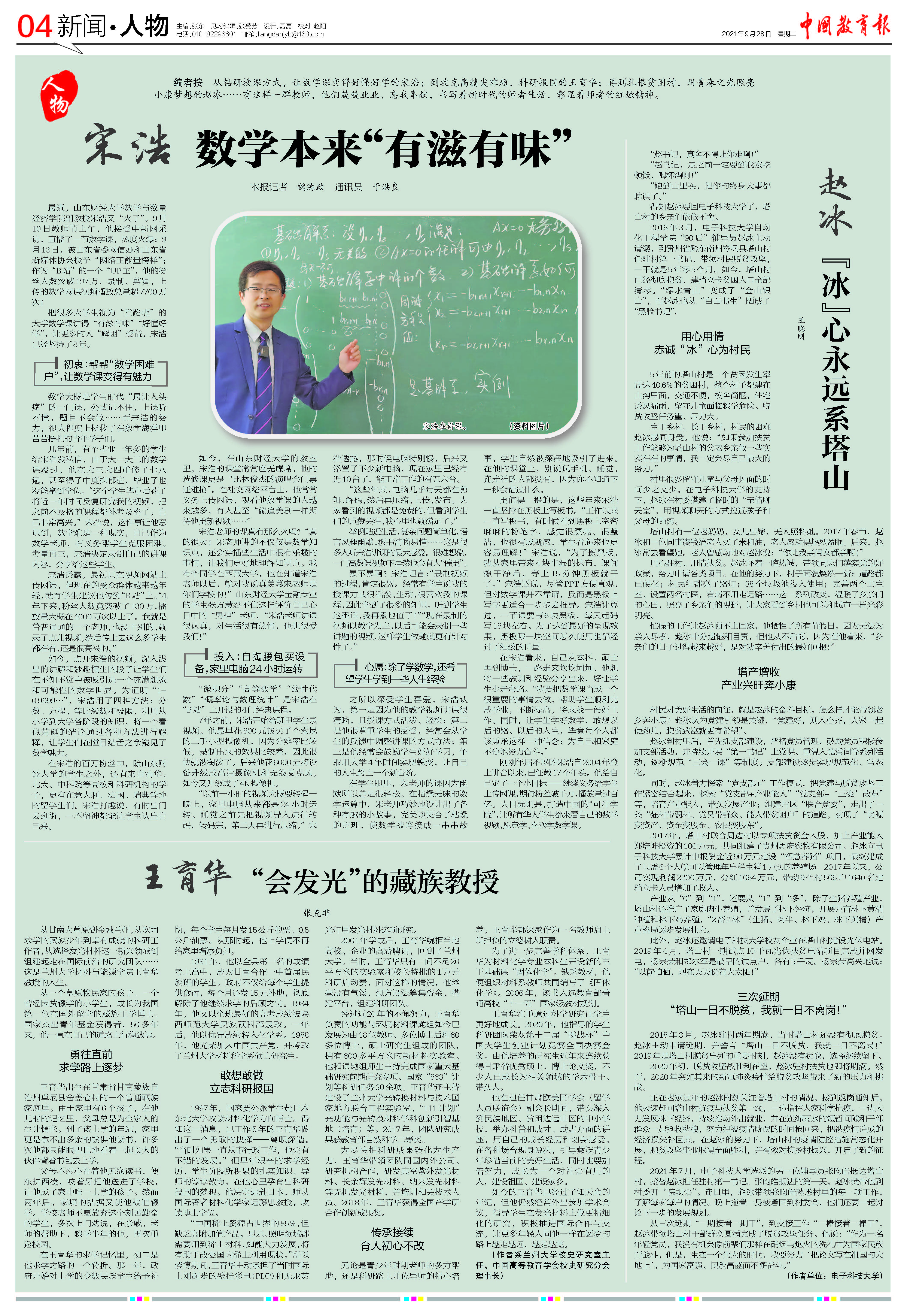 在宋浩看来,自己从本科、硕士再到博士,一路走来坎坎坷坷,他想将一些教训和经验分享出来,好让学生少走弯路。“我要把数学课当成一个很重要的事情去做,帮助学生顺利完成学业,不断提高,将来找一份好工作。同时,让学生学好数学,敢想以后的路、以后的人生,毕竟每个人都该秉承这样一种信念:为自己和家庭不停地努力奋斗。”