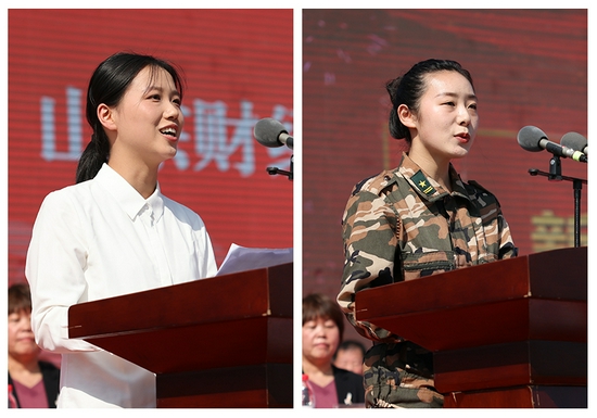 在校生代表财政税务学院2018级财政学专业王正琪、新生代表会计学院2021级工商管理类刘杨分别发言。