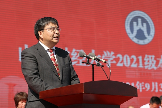 金秋九月,硕果飘香;圆梦财大,青春飞扬。9月30日,山东财经大学2021级新生开学典礼在圣井校区田径场举行。校长赵忠秀,校党委副书记韩作生,副校长陈晓兰、张书学、张新、张培国、陶虎,纪委书记、山东省监察委员会驻山东财经大学监察专员王福岱,1988级计划统计专业校友、北京银行济南分行党委书记、行长房旭,教师代表、山东省高校青年创新团队带头人沈万芳教授等出席典礼。典礼由陶虎主持。