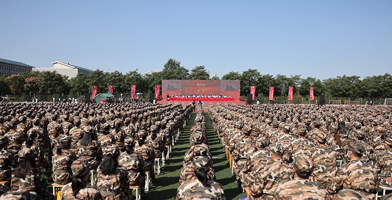9月30日,山东财经大学2021级新生开学典礼在圣井校区田径场举行。校长赵忠秀,校党委副书记韩作生,副校长陈晓兰、张书学、张新、张培国、陶虎,纪委书记、山东省监察委员会驻山东财经大学监察专员王福岱,1988级计划统计专业校友、北京银行济南分行党委书记、行长房旭,教师代表、山东省高校青年创新团队带头人沈万芳教授等出席典礼。典礼由陶虎主持。