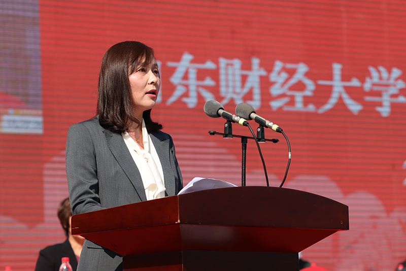 教师代表沈万芳分享了自己学习生活的心得,勉励同学们要常怀感恩之心,不懈追求真理,不负青春年华。作为老师,愿与同学们一起收获知识、收获成长、收获成功,恪守“克明峻德、格物致知”校训,共同谱写山东财经大学的华美篇章。