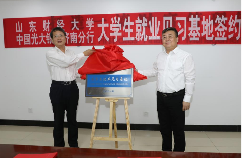 9月28日上午,山东财经大学与中国光大银行济南分行举行大学生就业见习基地签约暨揭牌仪式。