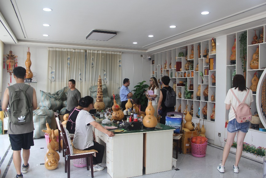 在路村新庄支部书记的带领下,团队来到葫芦文化产品制作厂,这里将葫芦加工和文化创意进行结合,赋予葫芦新的生命力。同时路庄新村打破传统销售模式,建立起专业的葫芦营销直播间,通过电商平台将独具特色的葫芦销往全国各地,扩展了手工艺葫芦的销售渠道,成功打响路庄新村“中华葫芦第一村”的称号,为当地创造了新的经济收入,帮助居民走上致富之路。