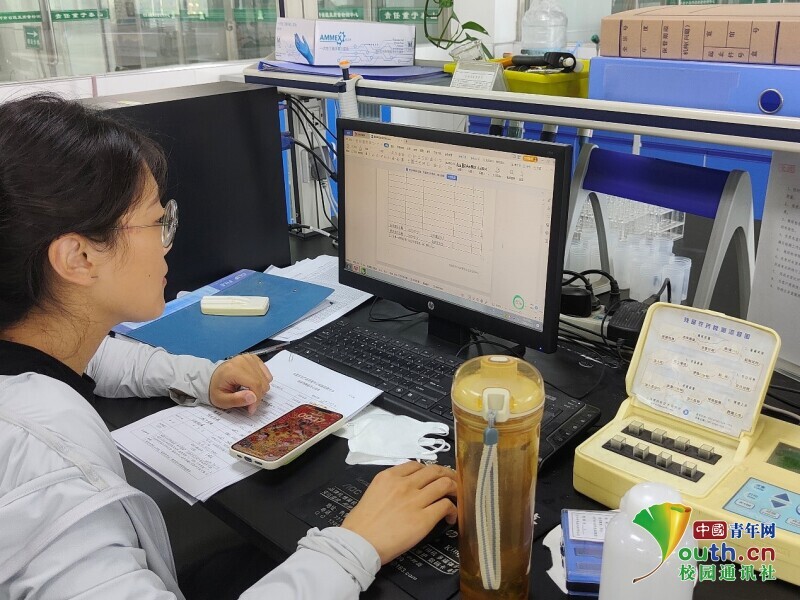 图为质量检测中心工作人员在上传残留农药检测数据。中国青年网通讯员 汪锦瑞 摄