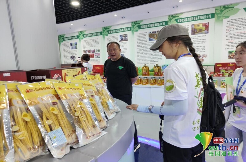 图为苏主任正在为团队介绍内黄近几年来有较好发展的特色产品,包括腐竹、辣椒酱、花生等。中国青年网通讯员 吴孟洁 摄