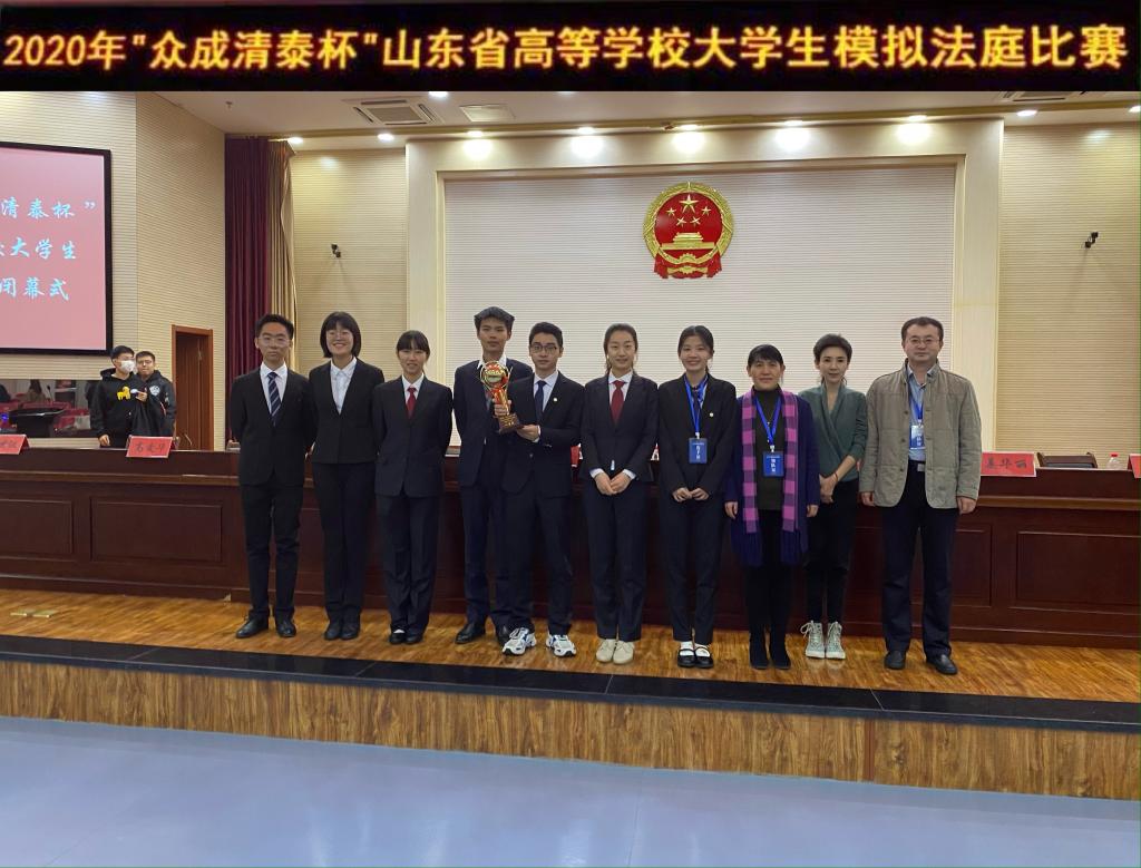 11月21日至22日,2020年“众成清泰”杯山东省高等学校大学生模拟法庭比赛在威海举办。经过激烈角逐,我校代表队获得团体一等奖的好成绩,实现新的突破。法学院副院长李震副教授、吕欣副教授获优秀指导教师称号,艾欣同学获最佳辩手称号。