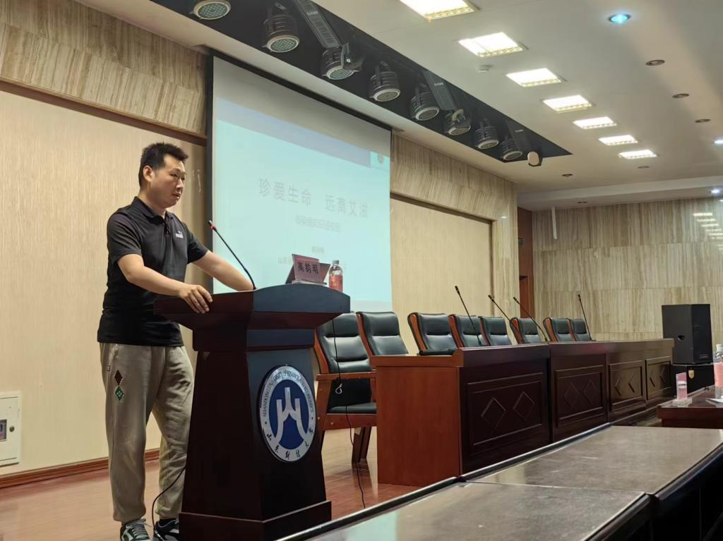 为增进广大学生对艾滋病的认识,深入贯彻落实国家防治艾滋病“十三五”行动计划,加强学生的自我防范和保护意识,5月20日,由校医院和党委学生工作部共同组织的“珍爱生命,远离艾滋”科普讲座在圣井校区成功举办。讲座邀请山东省公共卫生临床中心感染疾病二科副主任医师高钧明担任主讲,高主任擅长各种感染性疾病的诊断与治疗,尤其是HIV患者的各种机会性感染及AIDS疾病状态的诊治。山东省公共卫生临床中心皮肤病门诊副主任护师李芹、皮肤病门诊主管护师李杰、圣井校区校医院院长李荣出席活动,活动由党委学生工作部副部长张贞梅主持。