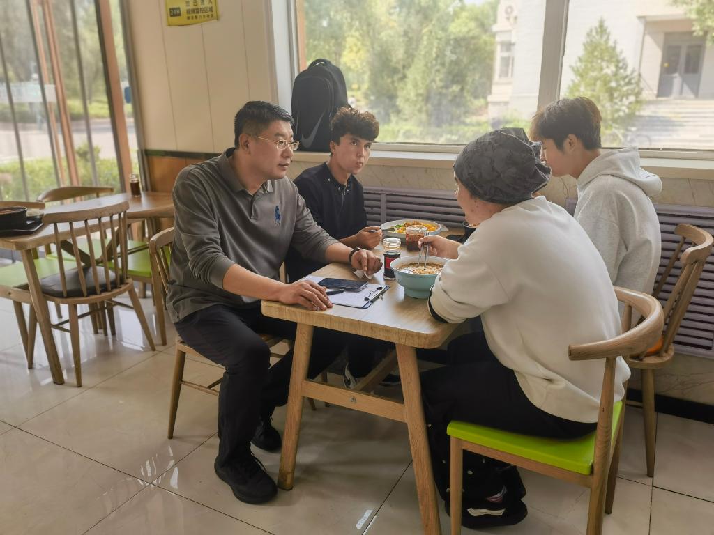 走访调研中,刘旻航关切询问同学们的学习生活适应情况,重点关注住宿环境、设施配备及安全隐患,细致询问少数民族学生“学习能否跟得上”“饮食是否习惯”“住宿是否满意”等细节,并耐心解答大家关注的学业及生活等方面的疑问。他鼓励同学们在交流互动中增进了解、共同进步,利用假期或课余时间走出校园,切身感受济南城市文化,更快地融入新的学习和生活环境。