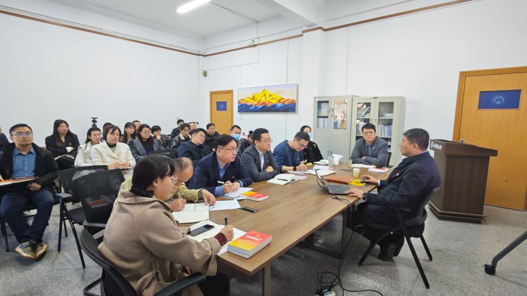 11月21日上午,学生处(武装部)党支部、团委党支部在燕山校区1104会议室召开深入贯彻落实党的二十届四中全会精神专题党课。校党委委员、副校长刘旻航以普通党员身份参与活动,并为支部全体党员作主题宣讲。