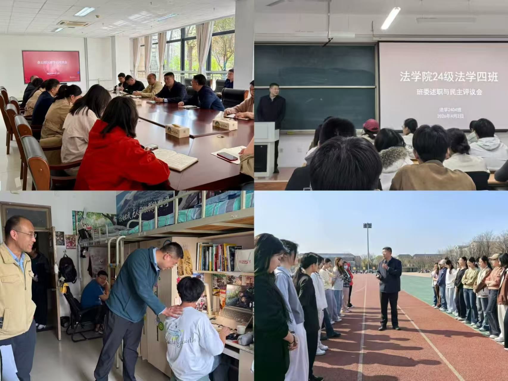 会后,刘旻航参加了法学院2024级法学4班主题班会,对同学们关心的话题进行了讲解、讨论;他走进操场,看望了正在上体育课的同学们,与师生进行了亲切交流;在学生宿舍,他鼓励同学们“走出宿舍、走下网络、走向操场”,在体育锻炼中增强体质、锤炼意志。调研中,刘旻航听取了同学们对体质健康提升和测试相关工作的意见和建议,他强调,体质健康是学生全面发展的基础,要持之以恒提升身体素质,以昂扬状态面对学习生活。