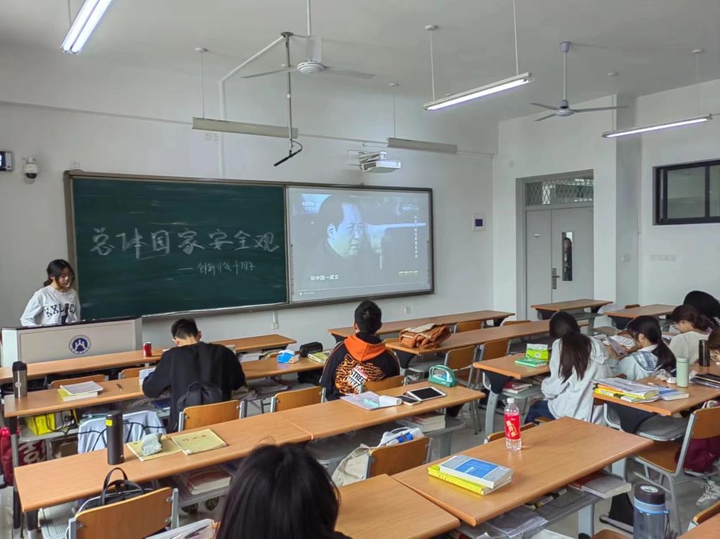 活动伊始,团支书和笑薇同学线上线下组织同学们观看了由中央广播电视总台《国家记忆》栏目推出的《从全民教育看国家安全》《坚定不移贯彻总体国家安全观》《汇聚人民力量,维护国家安全》等短片。同学们从短片中了解到推进国家安全体系和能力现代化,以新安全格局保障新发展格局,是新征程中国共产党统筹发展和安全的新战略举措,是总体国家安全观内容不断丰富发展的体现。2024年是总体国家安全观提出十周年,也是开辟国家安全工作新局面的十周年。