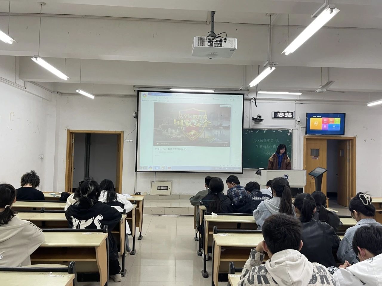 首先,团支书王清杰带领大家阅读相关书籍,这使得同学们对维护国家安全的任务有了初步了解。其次,同学们观看了学习强国平台的纪录片,从历史的角度深化了国家安全的重要性。